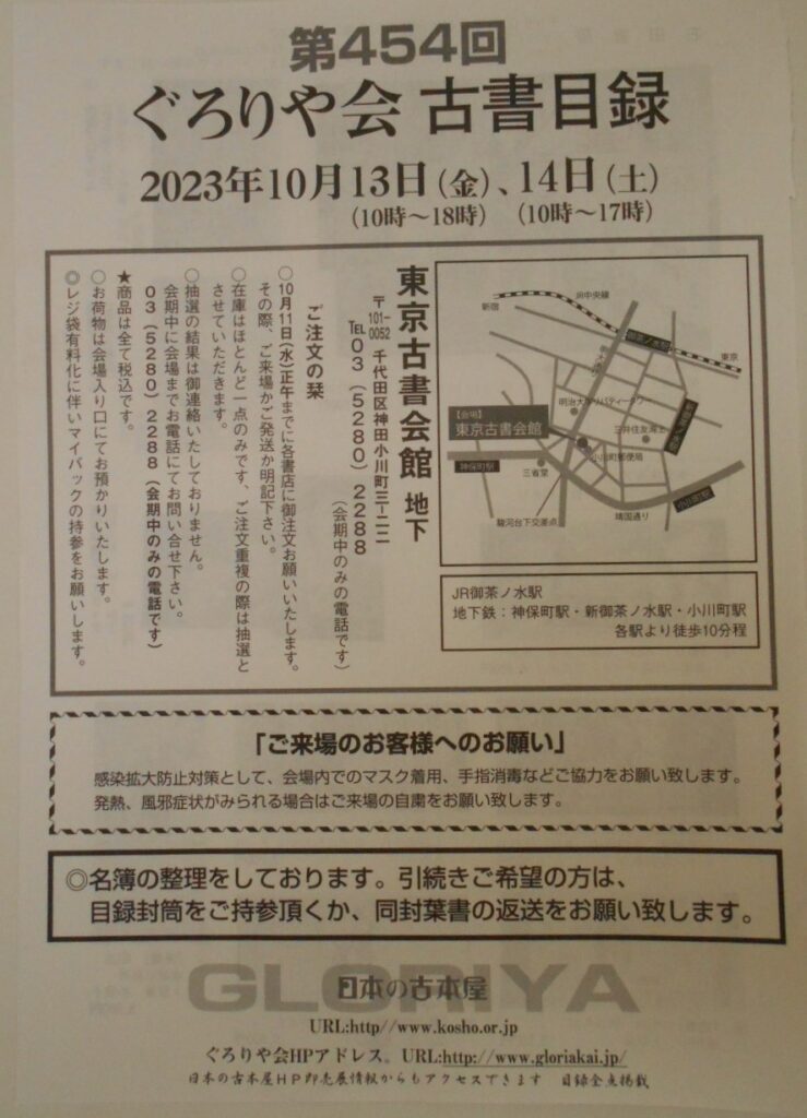【出店情報】東京古書会館地下「ぐろりあ会」に出店します 10月13日(金)・14日(土)