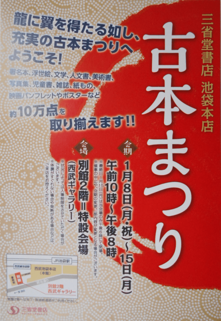 【出店情報】三省堂書店 池袋本店「古本まつり」へ出店します 1月8日(月・祝)~15日(月)